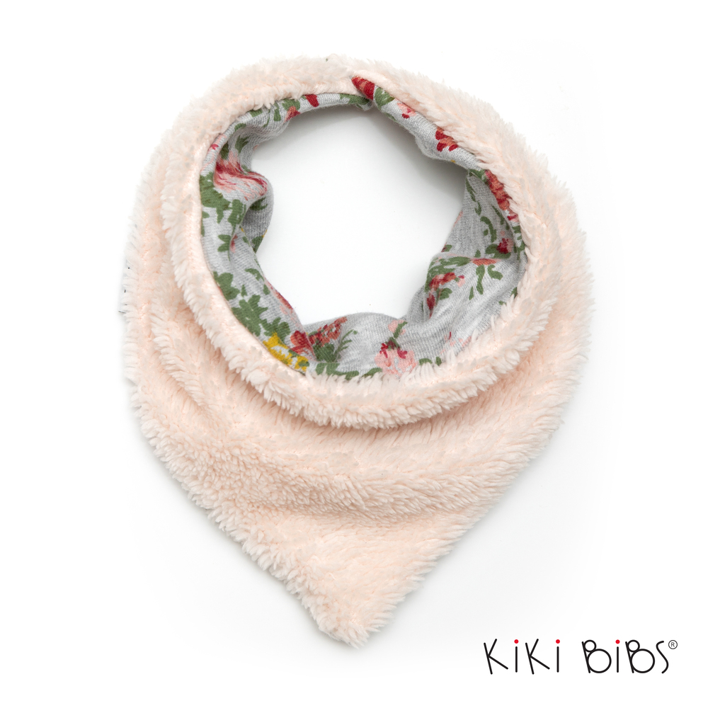 Зимна бандана за бебе с нежни рози и бледо розово гръбче