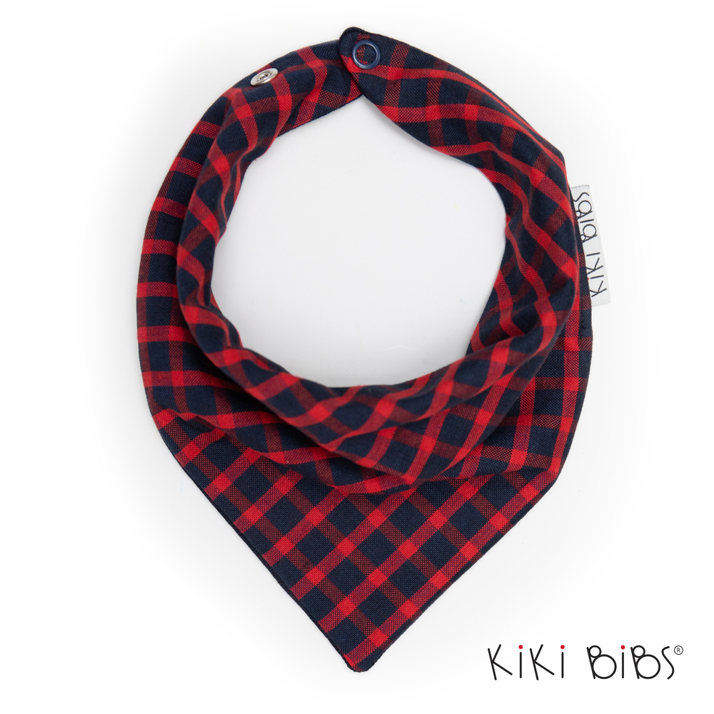Коледна бандана за бебе с класическо каре в червено и тъмно синьо